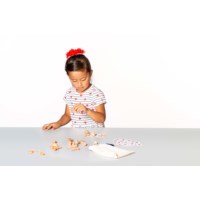 Place the wooden figures in the right place on the assignment card. Place the figures in the cotton bag to identify them by touch. Name the figures and develop vocabulary. Play the bingo game to develop the skills of playing together.